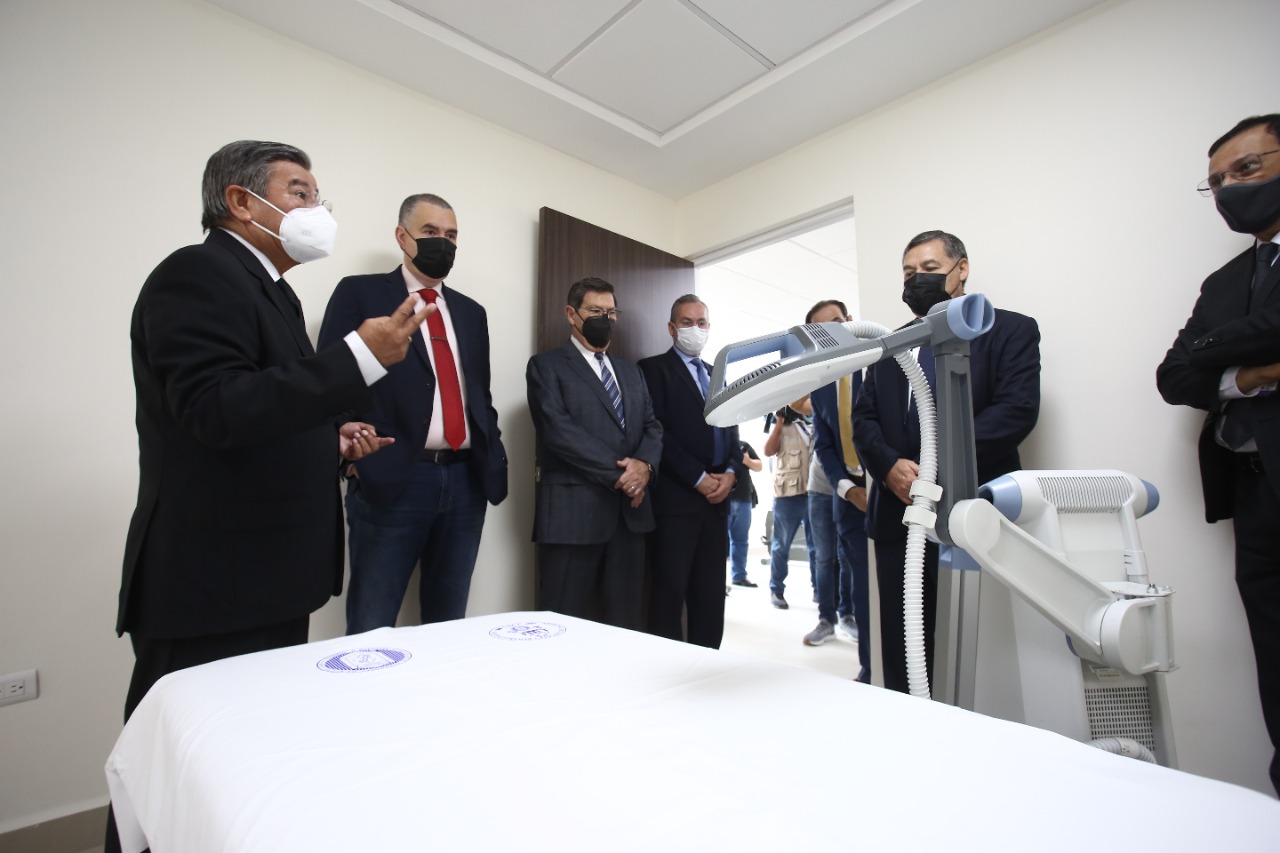 Después del corte inaugural, las autoridades universitarias recorrieron las nuevas instalaciones guiadas por los doctores Oscar Salas Fraire, Jefe de Medicina del Deporte, y Adrián Gutiérrez González, Jefe de Servicio de Urología.