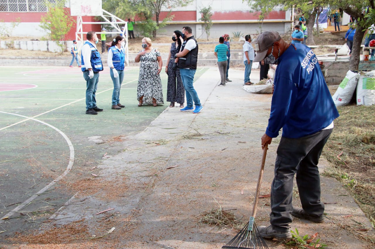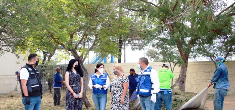 La Alcaldesa Elizabeth Galicia Ruiz supervisó este sábado dichos trabajos en la Secundaria Técnica número 31 de la Colonia Fama 1, donde padres de familia, vecinos, personal docente del plantel, así como empleados de Desarrollo Social, Servicios Públicos, Desarrollo Urbano y Ecología, y cadetes de la Policía municipal, efectuaron labores de retiro de maleza, siembra de árboles, desinfección y fumigación en esta escuela.