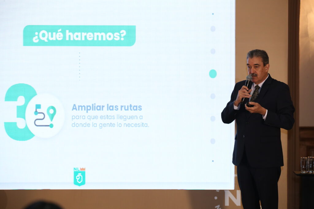 “Por eso el Estado tiene que entrar, meter el hombro, poner un orden y con este tipo de esquemas financieros poder empezar a alimentar de camiones nuevos, seguros y de primer nivel el transporte público de Nuevo León”.