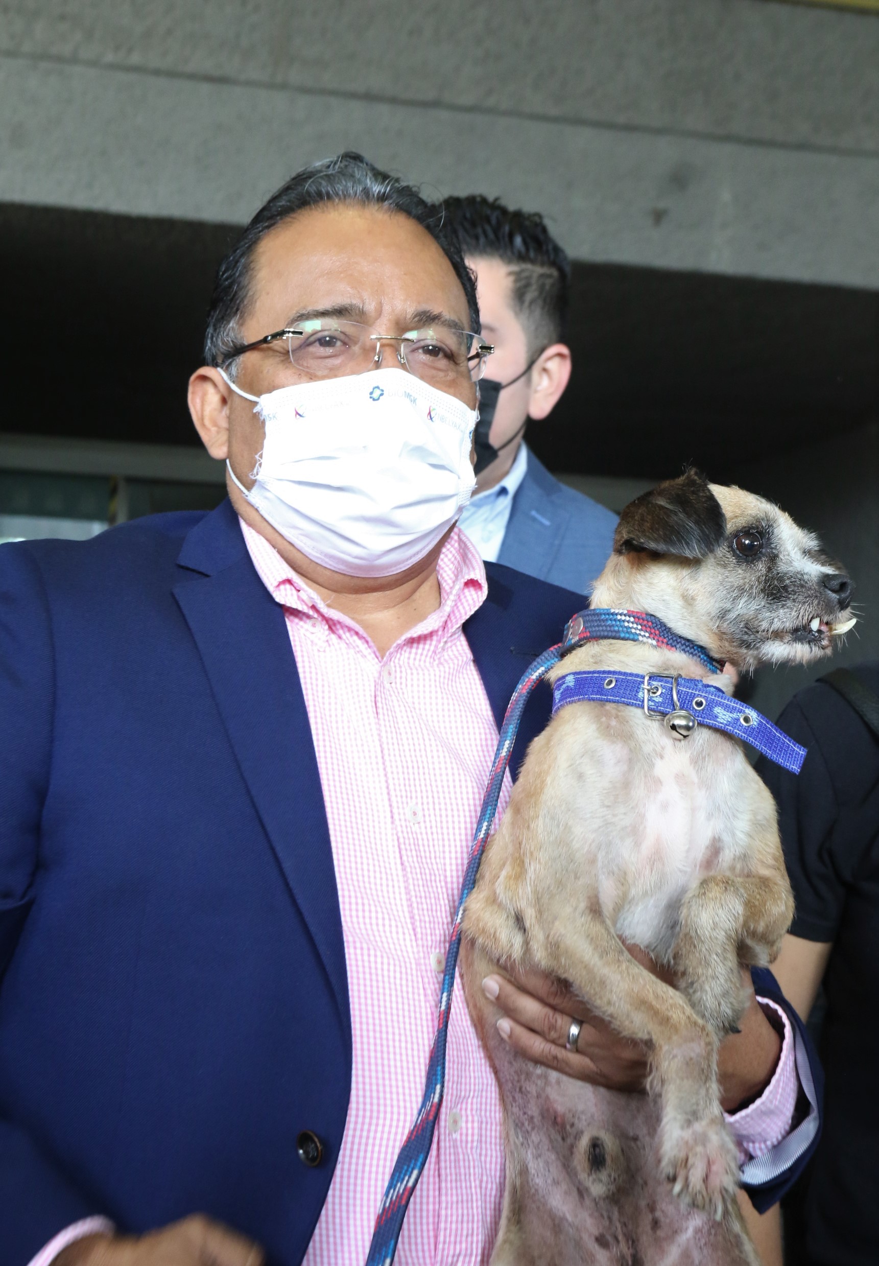 Mijes Llovera acudió a la Oficialía de Partes donde presentó la iniciativa acompañado de “Chilaquil”, “Lily” y “Tomasa”, tres perritos rescatados por la Dirección de Protección Animal de Escobedo, y quienes están a la espera de adopción.