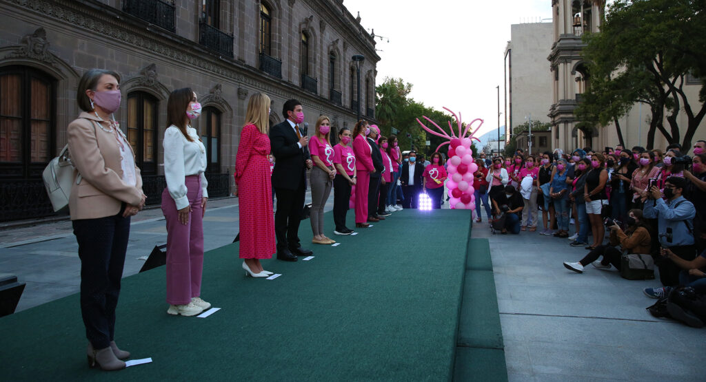 Al encabezar la ceremonia en donde se iluminó el Palacio de Gobierno de color rosa como parte de las conmemoraciones, indicó que en el nuevo Nuevo León se prioriza una estrategia para concientizar, educar, visibilizar y atender esta enfermedad.