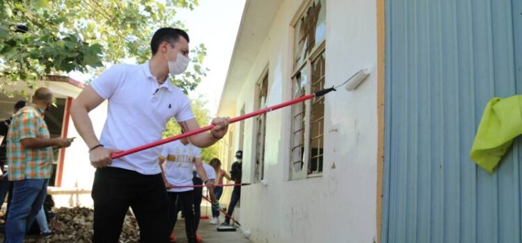 El candidato de Movimiento Ciudadano a la Alcaldía de Monterrey realizó hoy trabajos de limpieza y pintura en un plantel del sector San Bernabé, como pago a una apuesta realizada con su homólogo a la Gubernatura, Samuel García, en el último Clásico regio.