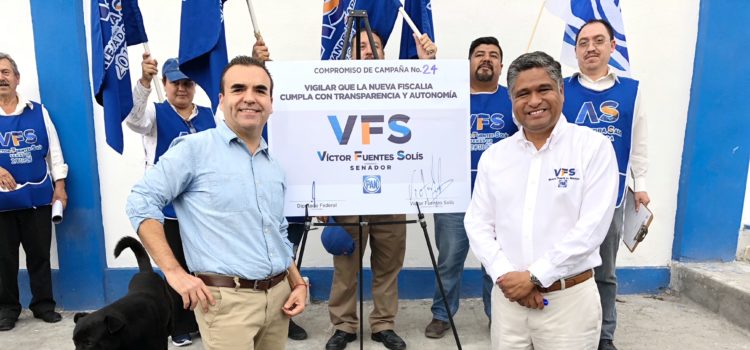Ante la falta de una figura tan importante como lo es el nuevo Fiscal General de la República, que garantice una impartición de justicia imparcial y sin preferencias políticas, el Candidato del Partido Acción Nacional Víctor Fuentes Solís se comprometió que de llegar al Senado vigilaría que la nueva fiscalia asignada cumpla con transparencia y autonomía.