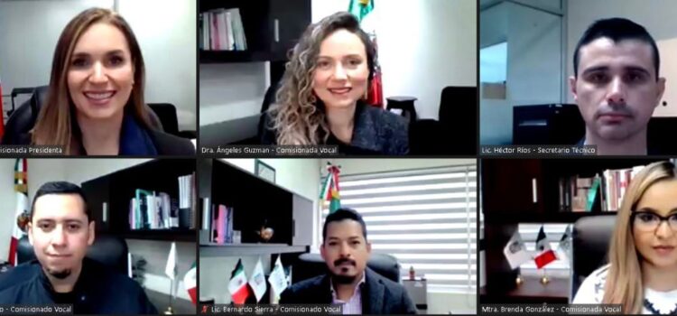 Encabezaron la sesión, la Comisionada Presidenta María Teresa Treviño Fernández, así como las y los Comisionados, María de los Ángeles Guzmán García, Brenda Lizeth González Lara, Bernardo Sierra Gómez y Francisco Guajardo Martínez.