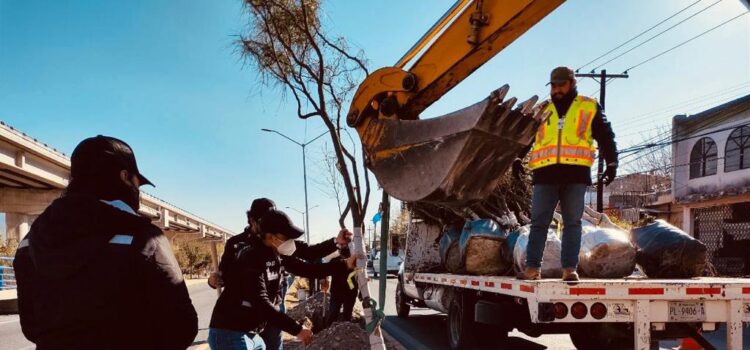 En esta ocasión, personal de la Secretaría de Desarrollo Urbano y Ecología del gobierno municipal colocaron sobre el camellón de la Avenida Morones Prieto árboles de la especie de ébano, así como retamas.