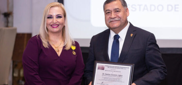 El rector de la Universidad Autónoma de Nuevo León (UANL), Santos Guzmán López, fue el invitado especial del acto conmemorativo por el aniversario número 36 de la Federación de Colegios Profesionales del Estado de Nuevo León.