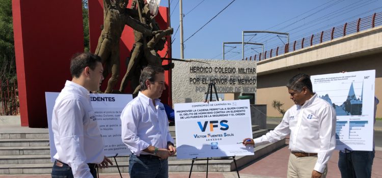 Cadena perpetua a quien cometa el delito de homicidio contra un elemento de la fuerza del orden, es la propuesta que Víctor Fuentes Solís aspirante del Partido Acción Nacional planteó en su camino al Senado como su compromiso numero 32° de campaña.