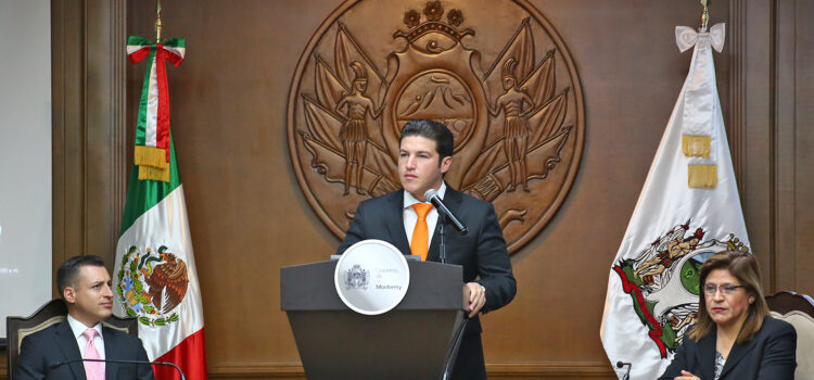 Ante representantes de los poderes Legislativo y Judicial, así como del Ejército Mexicano, el Gobernador Samuel García refrendó el compromiso de su Administración para apoyar en todo al municipio de Monterrey.