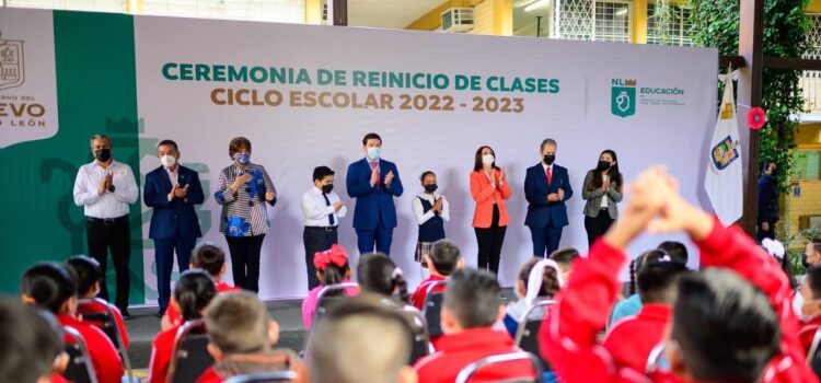 Tras encabezar la ceremonia de reinicio del Ciclo Escolar 2022- 2023 en la primaria Profesor J. Merced Garza Hinojosa, en la que estuvo acompañado por la Secretaria de Educación, Sofialeticia Morales, el Mandatario también señaló que el presupuesto es histórico y de beneficio para las y los estudiantes.