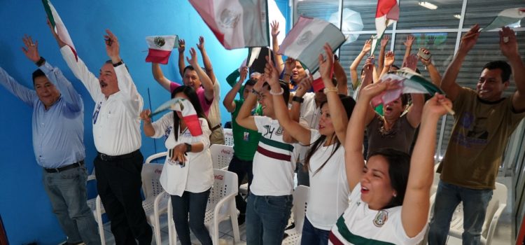 En un ambiente mundialista y “muy padre”, Pedro Garza Treviño festejó el triunfo de México en la copa del mundo con sus colegas panistas y los ciudadanos.