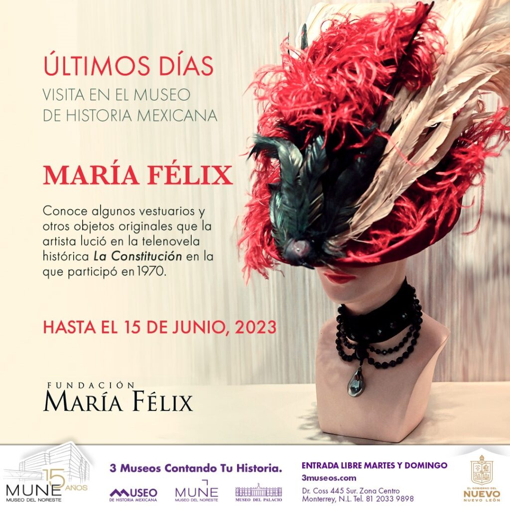El vestuario original que María Félix lució en La Constitución hace más de 50 años, que se muestra en la instalación dedicada a las telenovelas históricas que contribuyeron divulgación de la historia a través de la televisión, cerrará su ciclo de exhibición en el Museo de Historia Mexicana el miércoles 14 de junio.