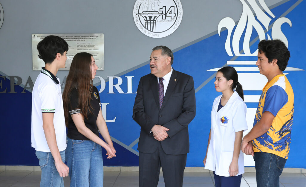 Durante el encuentro estuvieron presentes el Secretario Académico, Jaime Arturo Castillo Elizondo; la directora del Sistema de Estudios del Nivel Medio Superior, Sandra del Río Muñoz, y la anfitriona Aurora Carolina Gómez Treviño, directora de la Preparatoria 14 de la UANL.
