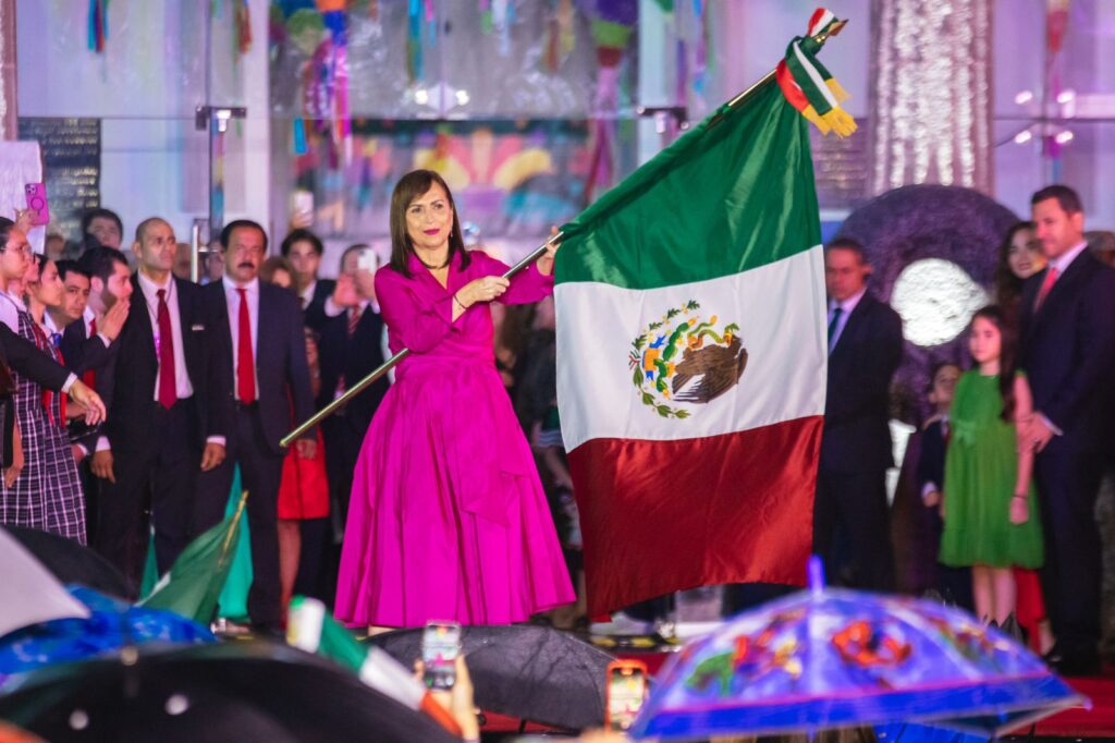 Una noche de fiesta y orgullo mexicano con música, baile y antojitos mexicanos, fue lo que envolvió el acto protocolario, donde la Alcaldesa acompañada de su Gabinete, Síndicos y Regidores; así como de Tomás Montoya, en representación del Congreso del Estado; emitieron el tradicional: “¡Viva México!”.