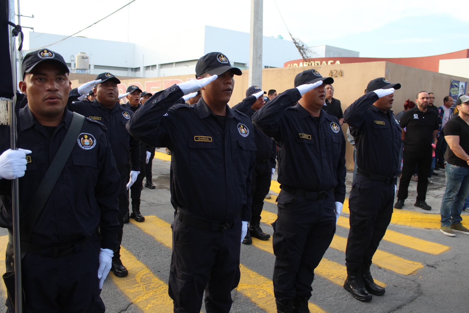 Vecinos del centro de Apodaca se congregaron para ver pasar los contingentes de las Secretarías de Seguridad Pública, de la Mujer, del Sistema DIF, Concertación Social, Deportes; así como de Protección Civil, El sindicato Único de Trabajadores al Servicio del Municipio de Apodaca (SUTSMA) y Juventud de Apodaca, entre otros.