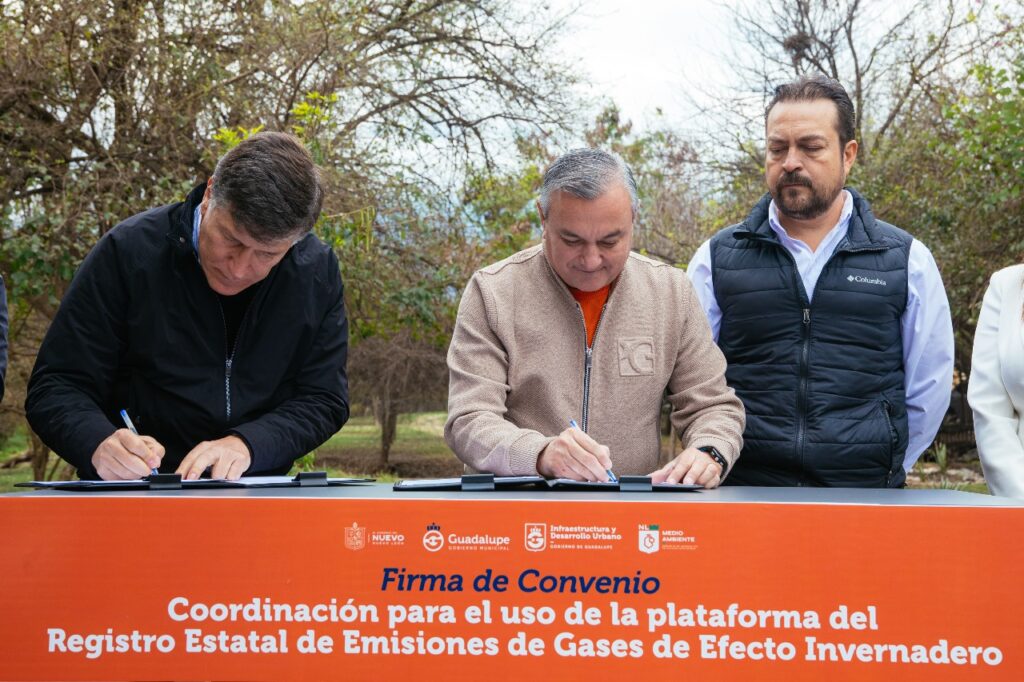 Para prevenir contingencias ambientales, el alcalde de Guadalupe Héctor García y el Secretario de Medio Ambiente estatal, Alfonso Martínez signaron un convenio para utilizar la plataforma del Registro de emisiones de gases de efecto invernadero.