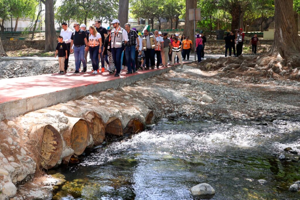 Ante la presencia de niños, jóvenes y adultos el alcalde y su esposa Blanca Treviño, acompañados por integrantes del Cabildo y el Gabinete, encabezaron el primer recorrido de este complejo ecoturístico.