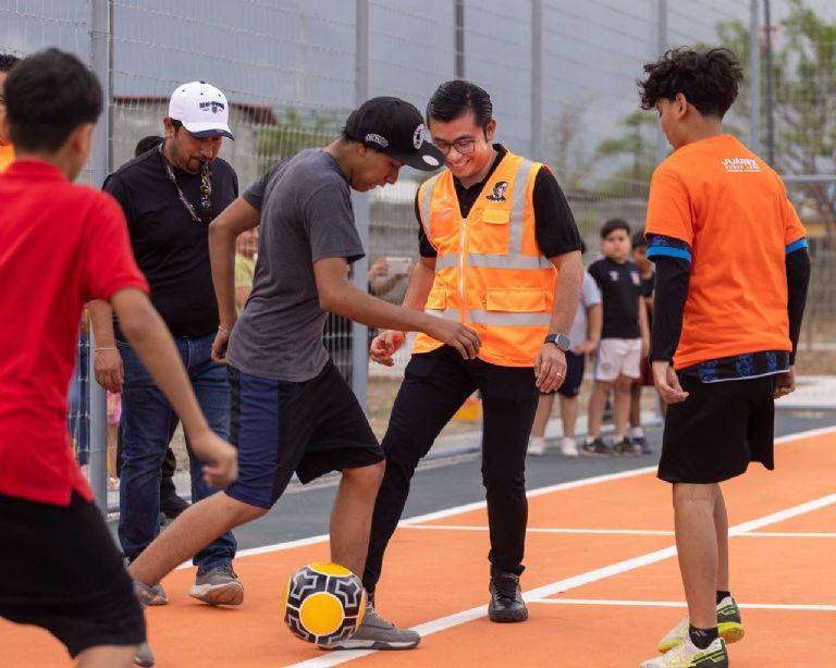 Para cerrar la jornada, el alcalde jugó una cascarita en la nueva cancha junto con el secretario de Obras Públicas, César García Cavazos, y niños del sector.