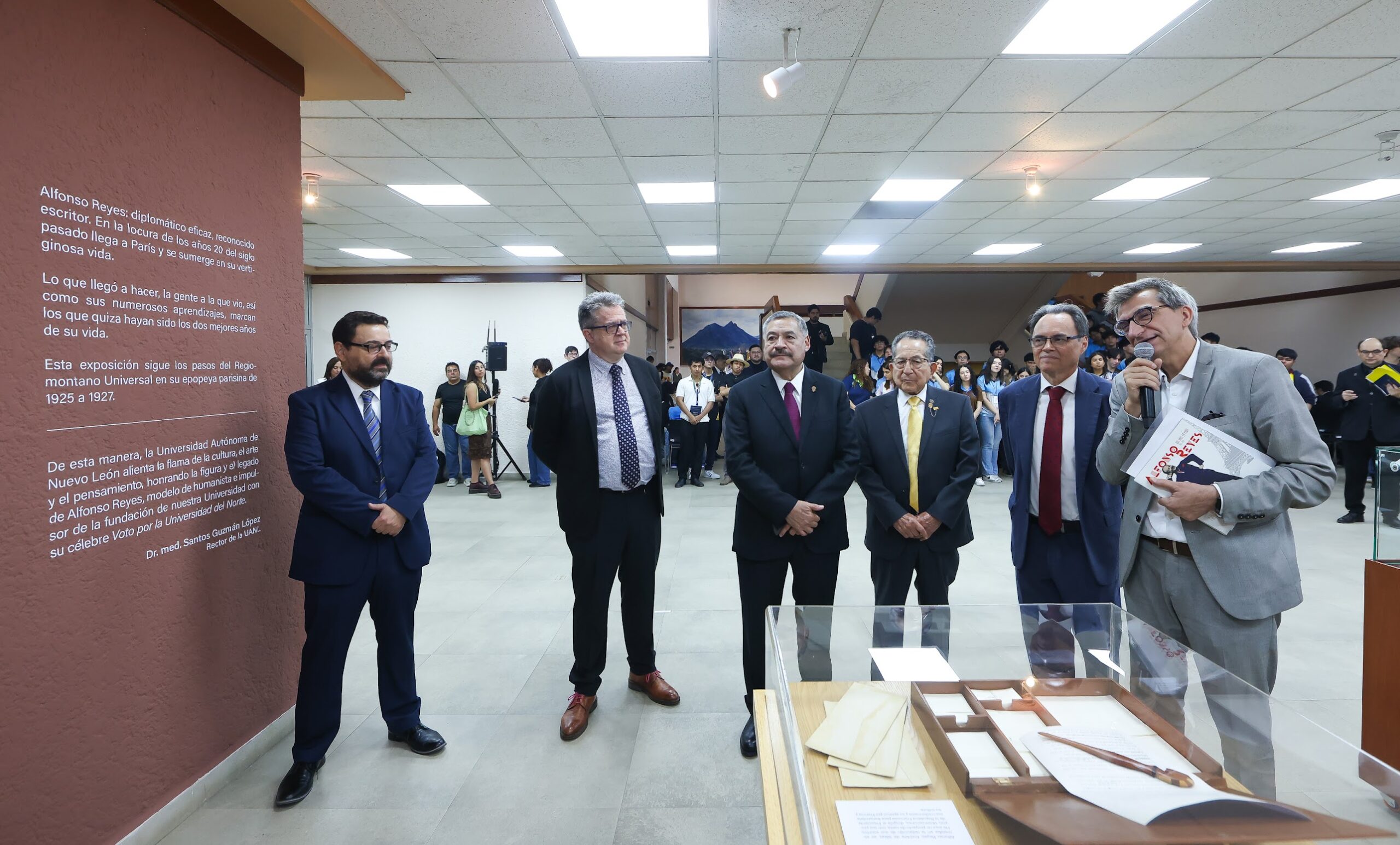 La Universidad Autónoma de Nuevo León alienta la flama de la cultura, el arte y el pensamiento honrando la figura y el legado de Alfonso Reyes, modelo de humanista e impulsor de la fundación de nuestra Universidad”, expresó Guzmán López.
