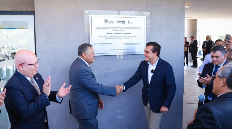 El rector de la Universidad Autónoma de Nuevo León, Dr. Santos Guzmán López, acompañado por el alcalde de García, Manuel Guerra Cavazos y autoridades universitarias puso hoy en marcha el Semestre Agosto-Diciembre 2025, con la inauguración de la Unidad Académica de García.