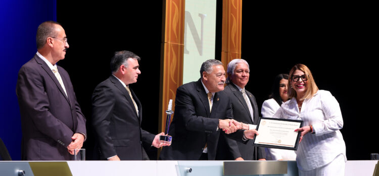 Como parte del acto protocolario, el ejecutivo universitario entregó a cada uno de los galardonados un diploma de reconocimiento y una estatuilla de cristal que emula la emblemática flama de la UANL.
