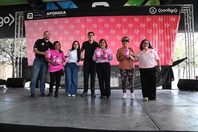 Durante la jornada, el alcalde César Garza Arredondo entregó un donativo a la Asociación Fuerza Rosa, en reconocimiento a su compromiso con la concientización, la prevención y el acompañamiento a mujeres que enfrentan el cáncer de mama.