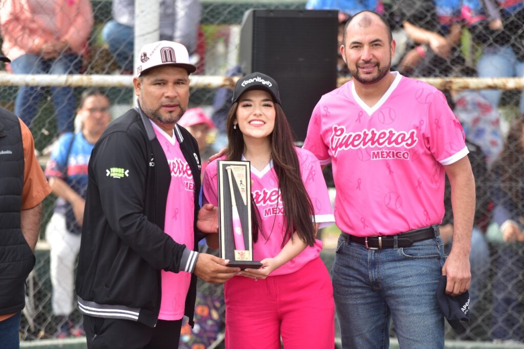La presidenta del DIF Municipal se convirtió en pitcher al ser la encargada de lanzar la primera bola al home, donde estaba bateando el ex beisbolista Edgar Quintero, y como cátcher el Secretario de Deportes, Rogelio Peña Salinas, así como la presencia también de Jorge Eduardo Fraire, director de la Academia Guerreros México.