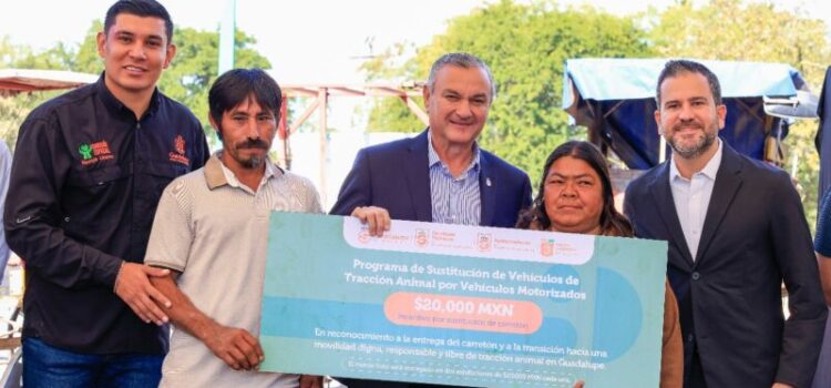 Con la entrega de los primeros incentivos a un grupo de 60 recolectores de basura, el Gobierno Municipal de Guadalupe dio un paso histórico para sustituir vehículos de tracción animal por unidades motorizadas.Además de iniciar la transición digna para contrarrestar el maltrato animal, cuidar el medio ambiente, otro objetivo primordial del programa, es proteger el futuro de niñas y niños de las familias de carretoneros, para que no sigan el mismo patrón de subsistencia.En el arranque del programa, autoridades municipales encabezadas por el alcalde Héctor García entregaron los primeros 40 apoyos por 20 mil pesos, que utilizarán los recolectores de basura para habilitar unidades motorizadas que tenían paradas por falta de mantenimiento.Con el apoyo económico que se les brinda reiniciarán su labor de recolectar basura, si así lo desean, pero ya no utilizando un carretón con tracción animal, sino con un vehículo motorizado que les sirva para llevar el sustento a sus hogares evolucionado su forma de trabajar, expresó el edil.Cabe destacar que los caballos que utilizaban los carretoneros quedaron a resguardo de Bienestar Animal del Estado.Asimismo, el alcalde anunció la habilitación de un Parque cercano al área de las Sabinitas, con la colaboración del organismo Supera, que contará con un andador, juegos y un área verde para brindar a la comunidad un lugar digno de recreación.Por su parte, el Secretario de Medio Ambiente del Estado, Raúl Lozano reconoció el trabajo del Gobierno de Guadalupe para cuidar el entorno y atreverse a tomar decisiones trascendentales como esta, haciendo más eficiente y ordenado el trabajo de los recolectores de basura.