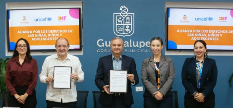 El municipio de Guadalupe a través del sistema DIF firmo la alianza estratégica con UNICEF para fortalecer la protección a los derechos de niñas, niños y adolescentes como parte del eje Guadalupe Solidario.Este acuerdo establece acciones para mejorar los protocolos de seguridad alineados a estándares internacionales, capacitación en temas de protección infantil, seguimiento de situaciones que vulneran a la niñez y adolescencia, además habilitar espacios seguros en eventos de gran afluencia.El alcalde de Guadalupe Héctor García, declaró que la protección a los más pequeños es de gran importancia.“Vamos a lo más importante que es cuidar a los seres humanos, sobre todo aquellos que más necesitan del acompañamiento de nosotros, porque es nuestra responsabilidad y porque quisiéramos que todos los niños sean felices para que luego ellos sean grandes ciudadanos que nos den precisamente el dividendo de ser bien formados y que se sientan protegidos por parte de los otros”, indicó el Alcalde de Guadalupe.Con la formalización de este convenio, Guadalupe fortalece el trabajo a la protección de la niñez con respaldo internacional garantizando entornos seguros y atención oportuna ante situaciones que pongan en riesgo sus derechos.