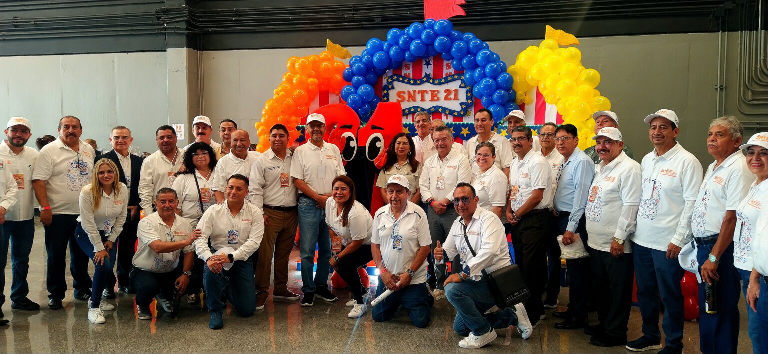 El Mtro. José Francisco Martínez Calderón, dirigente de la Sección 21, encabezó el evento acompañado por la Mtra. Elsa María Martínez Peña, en representación del Mtro. Alfonso Cepeda Salas, secretario general del Sindicato Nacional de Trabajadores de la Educación (SNTE).