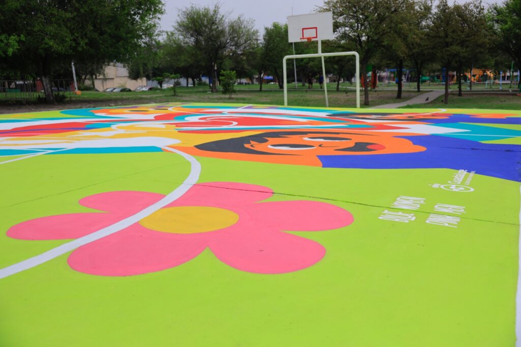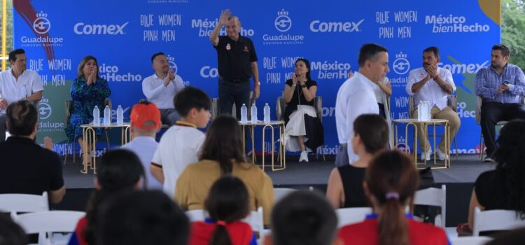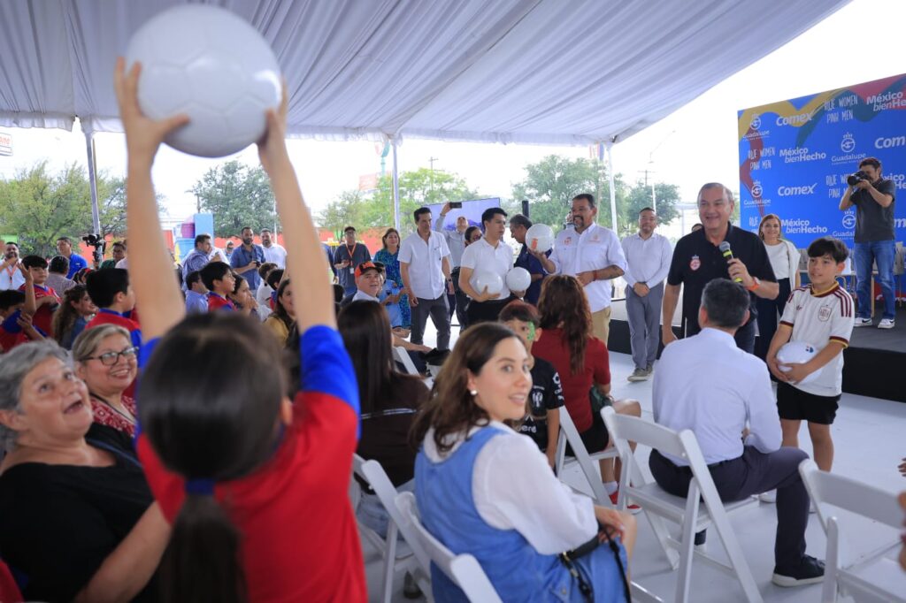 «Encontramos la respuesta inmediata y nos dice Comex: cuenta con nosotros, con que vamos a ayudarlos. Hicieron los estudios y en una de las colonias más importantes de Guadalupe, que es ésta, rehabilitaron esta hermosa cancha, que no es solamente una pintura, sino arte, que le va a dar a los niños y las niñas lo más valioso, la oportunidad de jugar en un espacio digno, como se merece la gente de Guadalupe», indicó el Alcalde Héctor García.