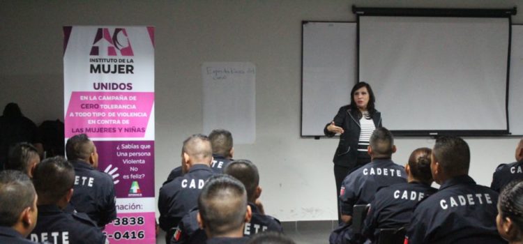 El taller es impartido por personal del Instituto Estatal de las Mujeres apoyados por integrantes de la Dirección de la Mujer en Apodaca, quienes capacitarán a 90 cadetes próximos a integrarse a las filas de la Guardia de Proximidad.