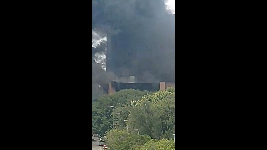 [1:05 a. m., 16/6/2020] Martha: Un incendio se registró la tarde de este lunes en el edificio de Tesorería del Estado ubicado por la calle 5 de mayo a una cuadra del palacio de Gobierno.