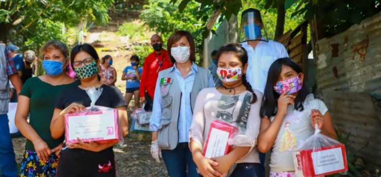 Cristina Díaz entregó, además, cubrebocas a niñas, niños, jóvenes y madres de familia, recordándoles que el uso es obligatorio ante el incremento en el número de casos de COVID-19.