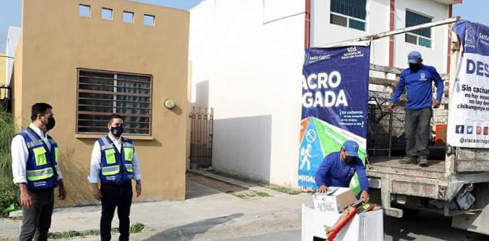 Para seguir cuidando la salud de las familias y mantener la ciudad limpia, el Gobierno de Santa Catarina continuó la brigada de retiro de “cacharros” en más colonias, a fin de recolectar objetos inservibles en las casas, evitar que sean tirados en la vía pública, y prevenir las enfermedades del dengue, zika y chikungunya.